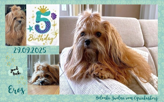 ...am 29.09.2025 sein zauberhafes Team-Mitglied "Eros" und gratuliert ihm von Herzen zu seinem 5. Geburtstag. Wir sind froh den liebenswerten Buben zu unserem Rudel zählen zu können und sind über seine gesunden Nachkommen, die er uns bisher geschenkt hat, sehr dankbar.